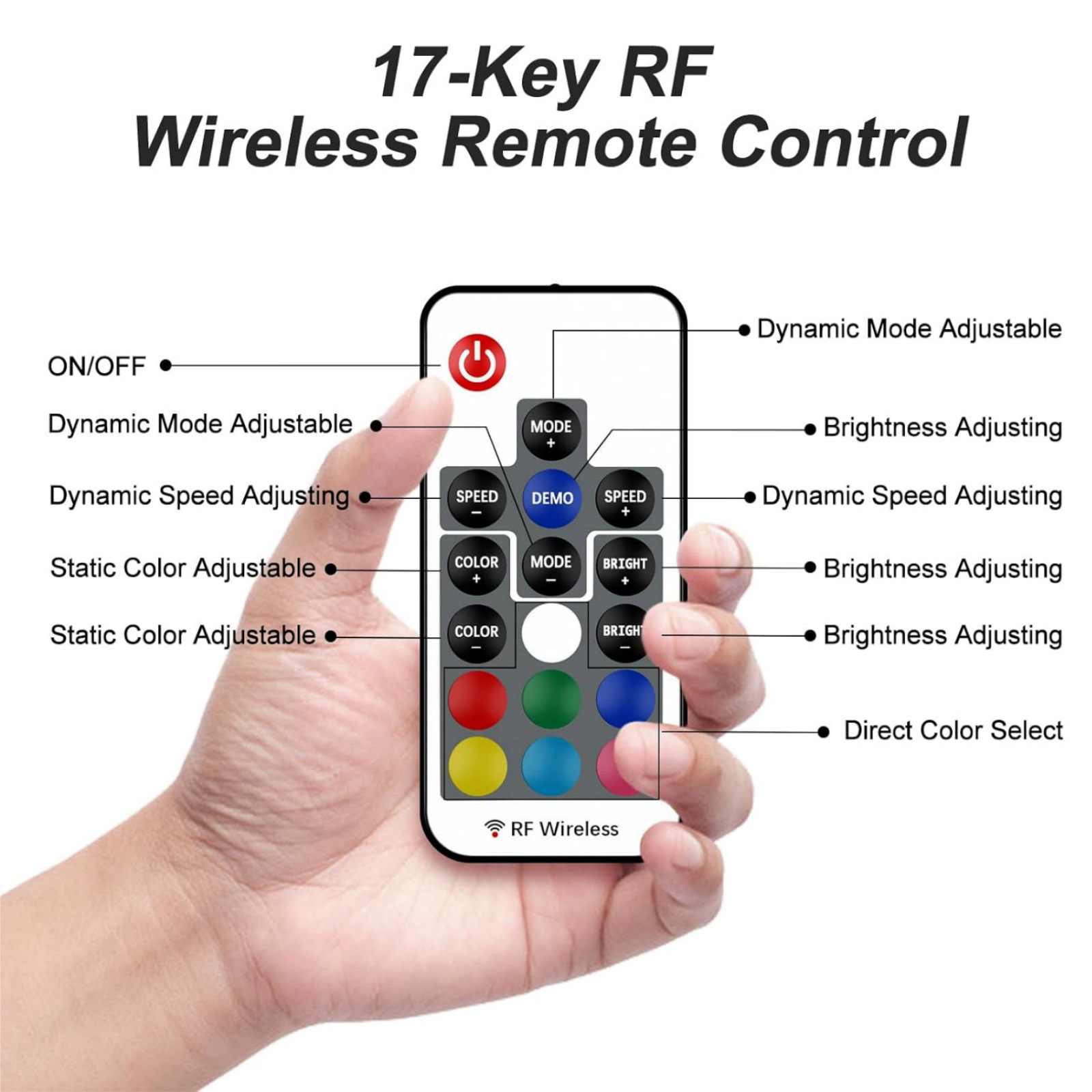 Remote Key: 17 Keys To Control On, Off, Color, Brightness, Flash Mode And Flash Speed