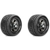 Trigger 1/10 Monster Truck Tires, Mounted on Chrome Black Wheels, 1/2 Offset, 12mm Hex (1 pair)