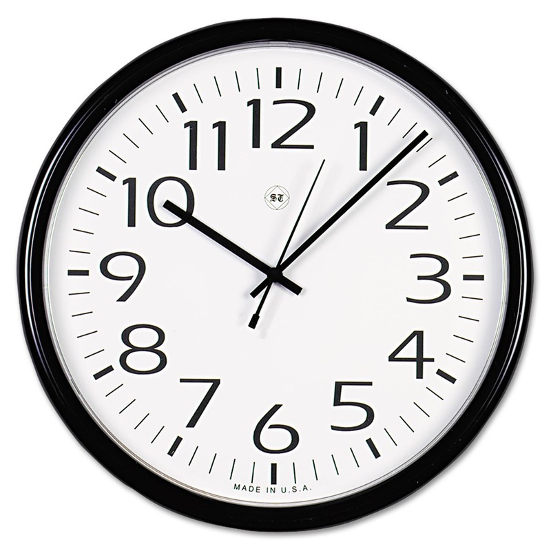 Universal Round Wall Clock, 13.5" Overall Diameter, Black Case, 1 Aa (Sold Separately)