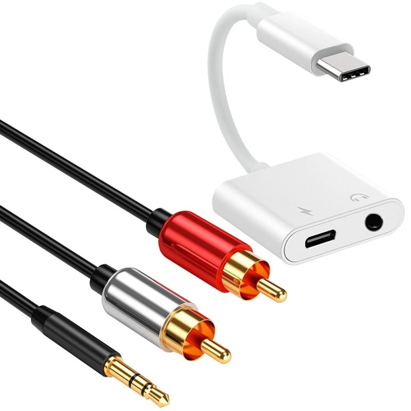 Universal Standard 2in1 USB C to 3.5mm AUX DAC Adapter + RCA Adapter Audio Stereo Cable US