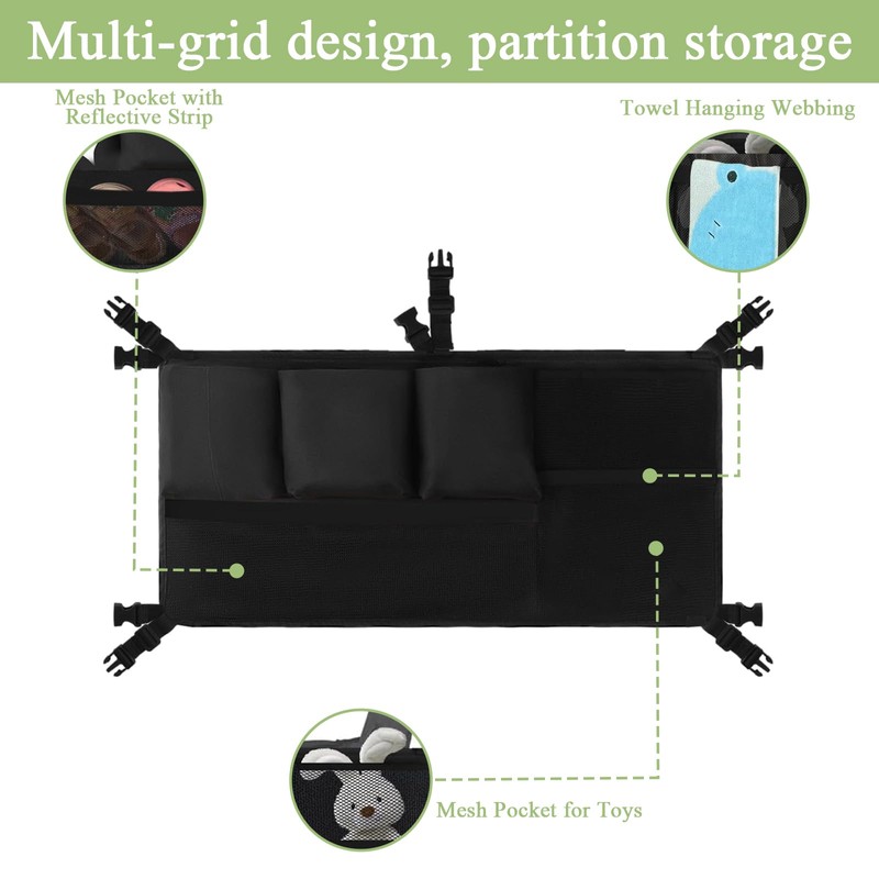 - 【Portable Installation】Hooks with elastic strap attachments on 4 corners allow the stroller wagon organizer to be attached to the wagon compartment frame for easy clamping and removal. The velcro strap in the center can be hung on the pole so that the stroller bag will not sag.