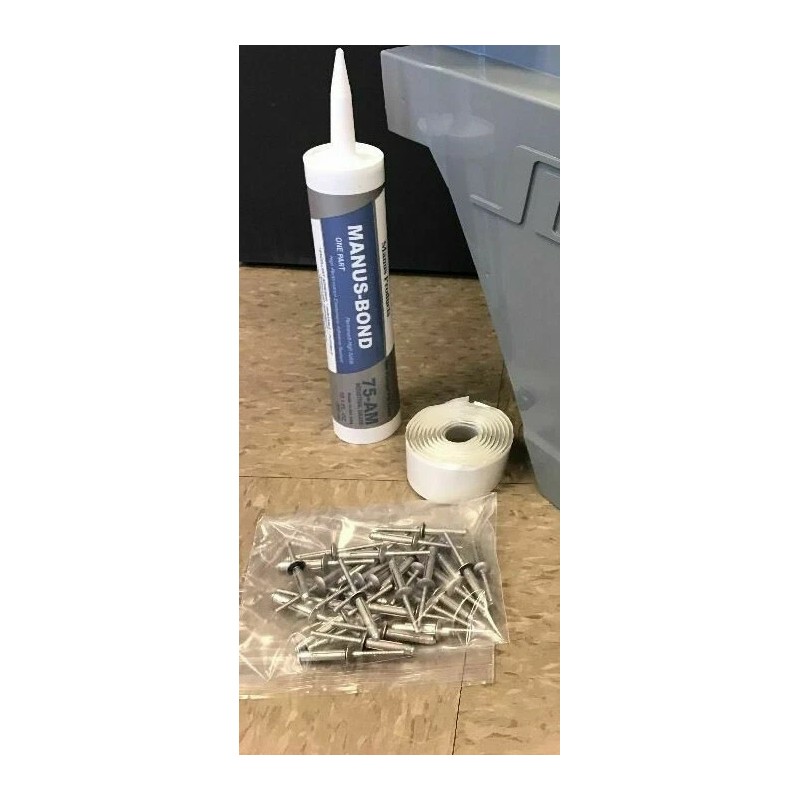 20 Rivets, 1 caulk tubes, and 1 piece of sealer tape - everything you need for install. This will work for any and all corner cap installs!