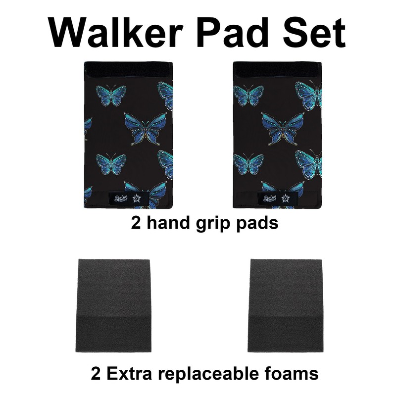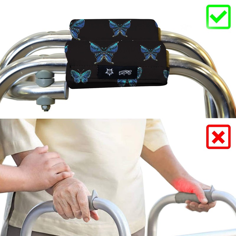 Universal Walker Hand Grip Padded Covers Non-Slip Cushion Foam for Folding Wheelchair Rollator Crutch Handle Pads 2-Pack Blue Butterfly