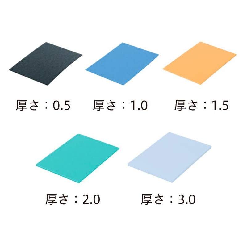 The board thickness is 0.02 inch (0.5 mm), 0.04 inch (1.0 mm), 0.06 inch (2.0 mm), 0.1 inch (3.0 mm) in 5 different colors, so it can be used stacked.