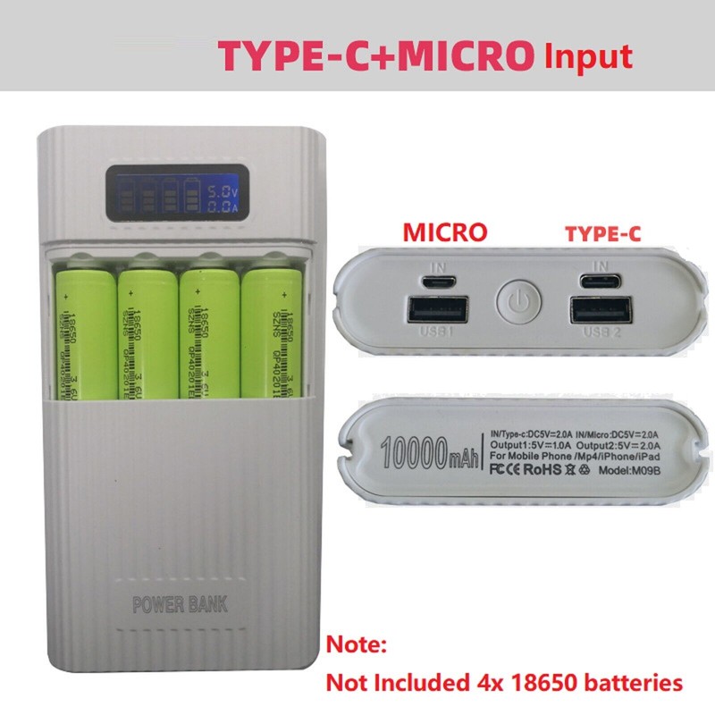 Universal White DIY Power Bank Case LCD Display 4 Slot 18650 Battery Charger Storage Box H