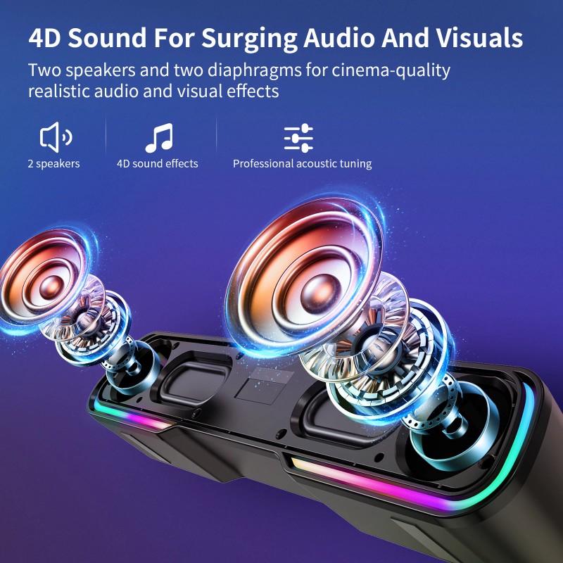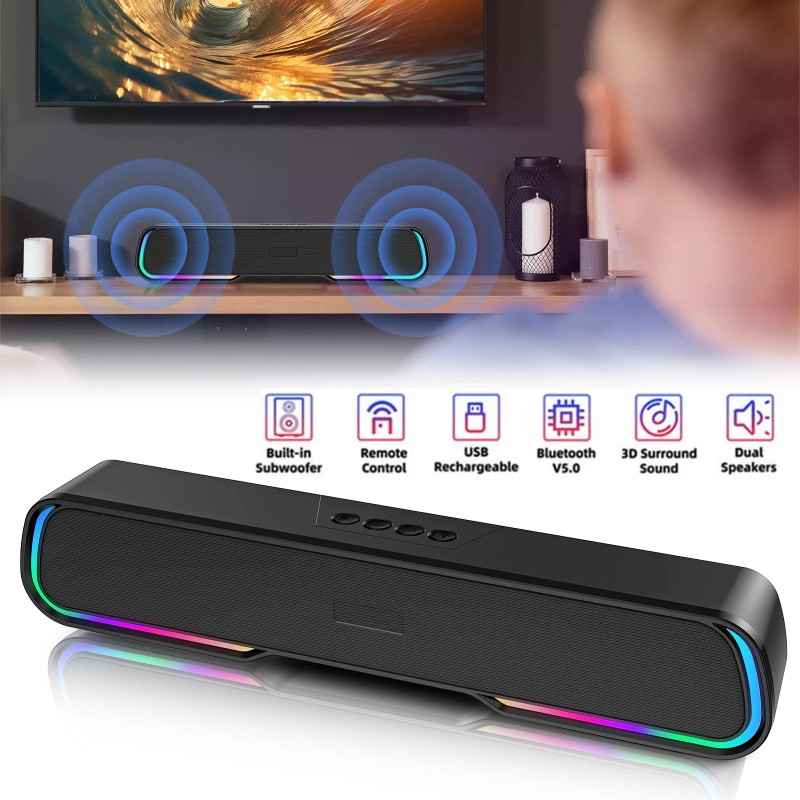 【2 Connection Methods】Our pc speakers support 2 connection methods which are Bluetooth and AUX wired connection, connects effortlessly with your preferred device. 3.5mm audio cable for connecting to TV, suitable for various devices such as TV, PC, laptop and smart phone. Wireless pairing version 5.0 can ensure fast pairing, and compatibility with various devices. This sound bar has 10m wireless pairing support for seamless streaming.
