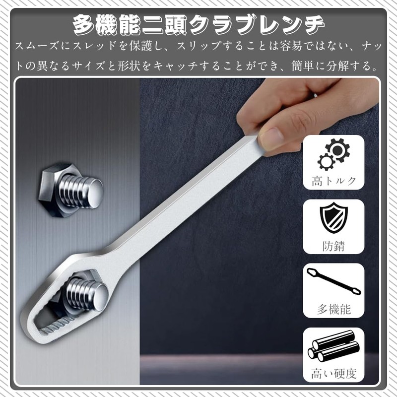- Multi-functional double head club wrench, smooth and protects threads, not easy to slip, can catch different sizes and shapes of nuts, and can be easily disassembled