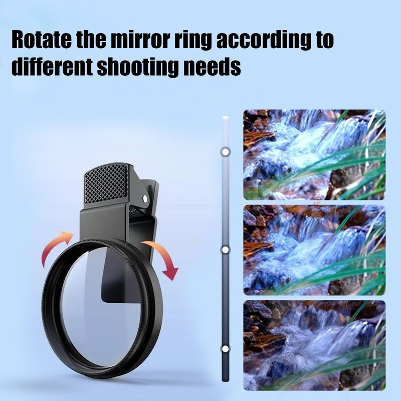 Das Set umfasst einen hochwertigen Clip-On-Objektivclip, der einfach und sicher an den meisten Handys und Tablets befestigt werden kann, ohne das Gerät zu beschädigen oder die Bedienung einzuschränken. So können Sie den Filter schnell anbringen oder abnehmen und flexibel auf verschiedene Aufnahmesituationen reagieren.