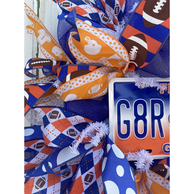 - Team Spirit: Show your Florida Gators pride with this vibrant 24" round mesh wreath featuring the iconic orange and blue team colors.