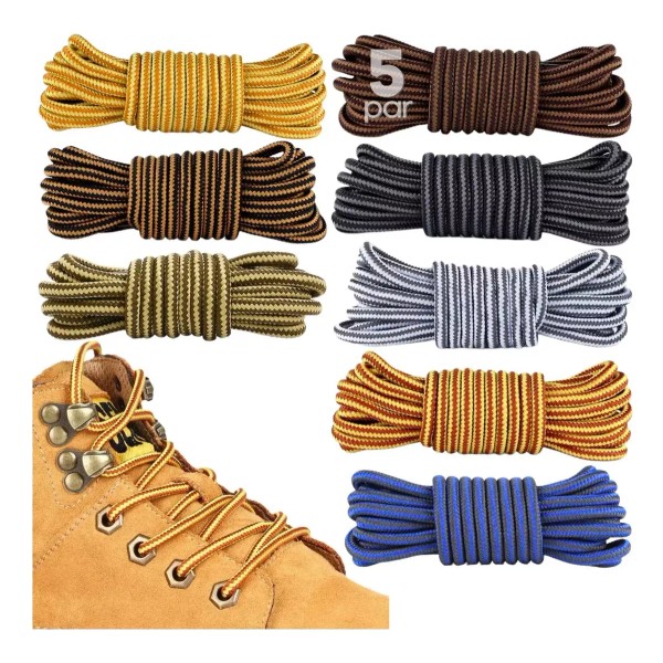 5 Pares - Cordones de poliéster de dos colores redondos a rayas de 4mm para zapatos de trabajo botas