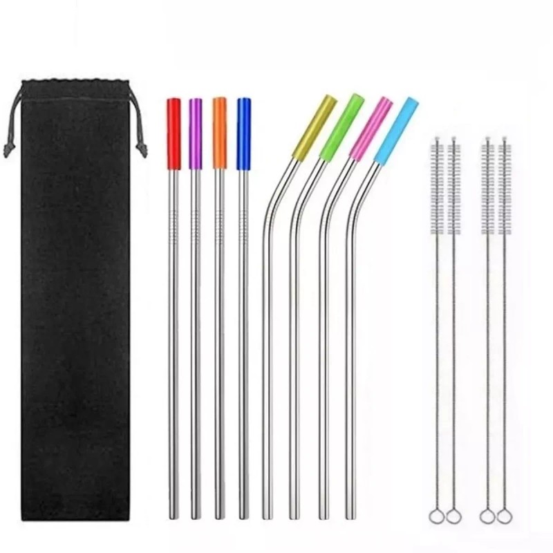 Universo en Linea Kit 8 Popotes Metálicos 4cepillos 1 Bolsa Ecológicos Calidad