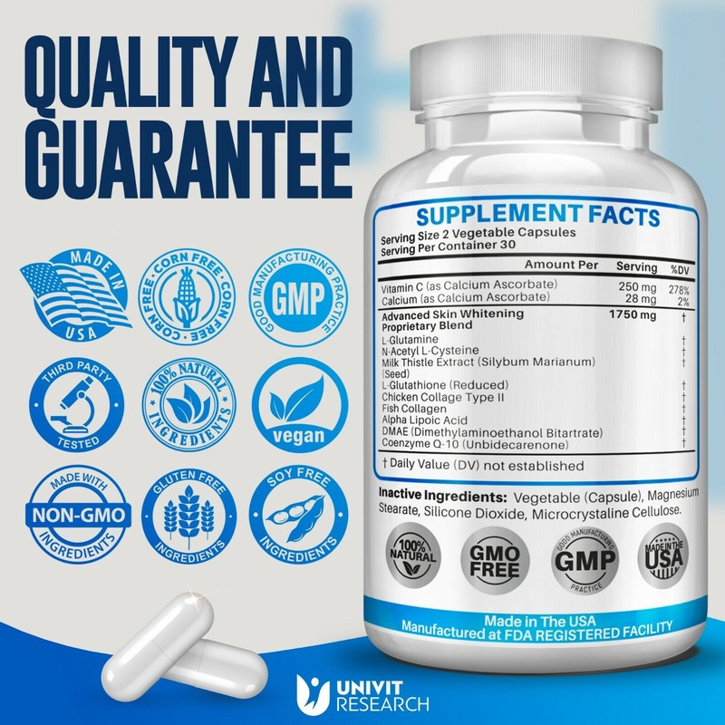 UNIVIT RESEARCH NAC Glutathione Skin Whitening Bleaching Anti-Agin Acne Scar & Dark Spot Remover