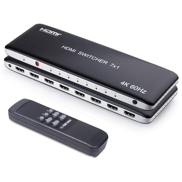 Univivi 7 Port HDMI Switch Version 2.0 4K@60Hz HDMI Switcher Support HDR & HDCP 2.2, Full HD/3D with IR Wireless Remote Control and Power Adapter