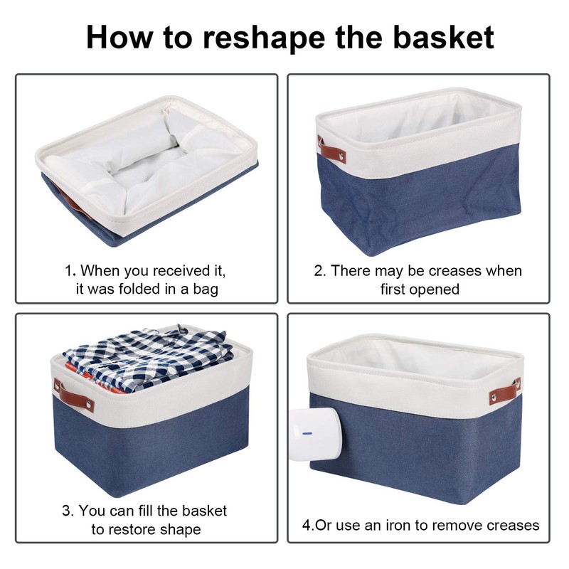• 【High-Quality Materials】-Blue closet bins made of environmentally friendly cotton and linen fabric , no strange smell,and the thickened bottom makes it more durable. Moreover, storage boxes for shelves use high-quality polyester lining, can be easily cleaned by hand or wipe the inside with a wet sponge.