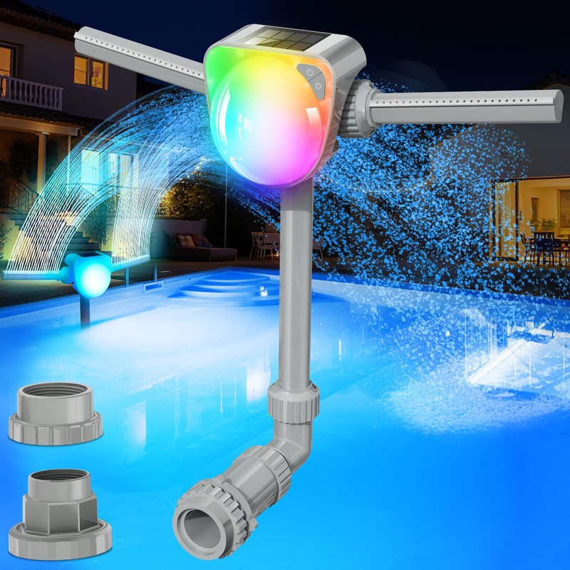 - 【Stunning Visual Allure】Spectacular! Solar pool fountain light show redefine the competition for creating the perfect light show and pool fountain in the backyard pool. Once fully charged, simply grab a drink and await the nightfall. The endless combination of colors and fade infade outflickering pulse styles made for either a really exciting pool light feature or a calming one depending on what you choose. Undoubtedly, pool fountain light definitely makes night swim more enjoyable and fun
