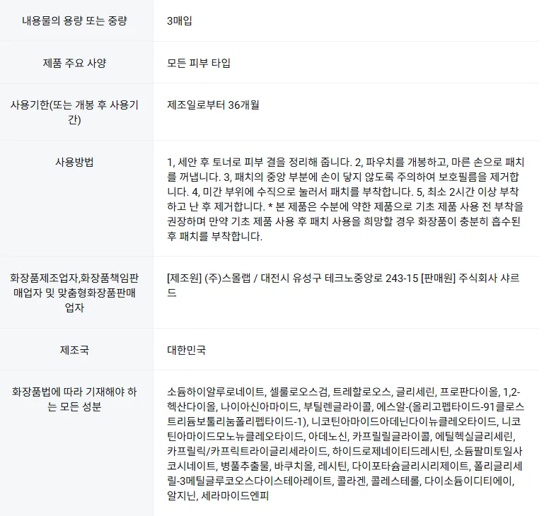 Unknown 샤르드 링클 톡스 미간패치 3매입 Sharde Wrinkle Tox Forehead Patch 3 Sheets