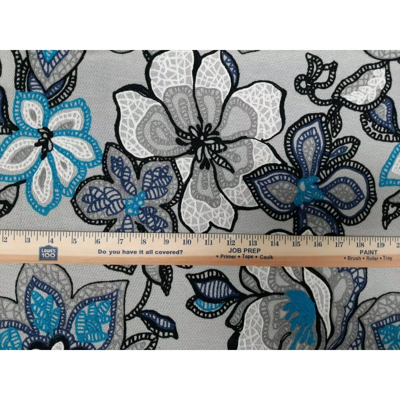 UNKNOWN Embroidered Crewel floral, Grays, White, Black , Aqua Blue Upholste...