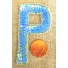 Unknown Letter P Sequin & Glass Bead Applique 2 3/4" 70mm x 1 5/8" 41mm Blue