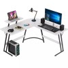 White Wooden L Shaped Corner Desk Laptop Computer Gaming Table Monitor Riser