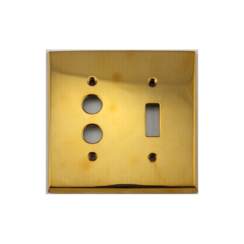 Unlacquered Polished Brass 2 Gang Combination Switch Plate - 1 Push Button Light Switch Opening 1 Toggle Switch Opening