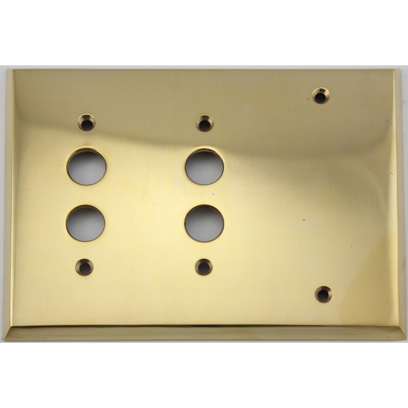 Unlacquered Polished Brass 3 Gang Combination Switch Plate - 2 Push Button Light Switch Opening 1 Blank