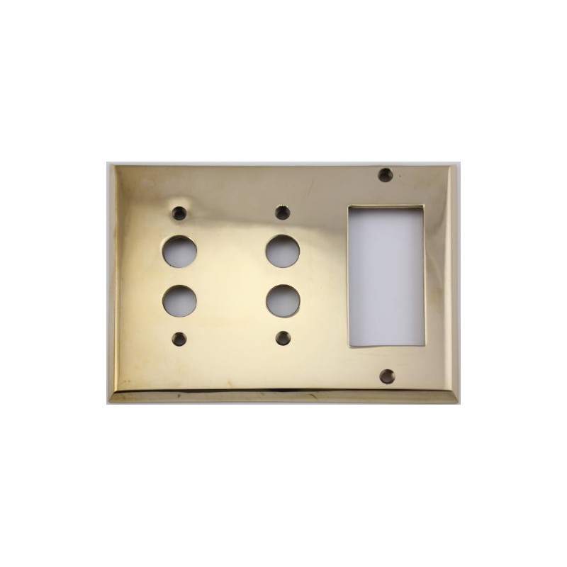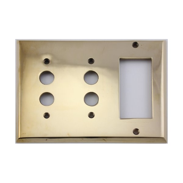 Unlacquered Polished Brass 3 Gang Combination Switch Plate - 2 Push Button Light Switch Openings 1 GFI Opening