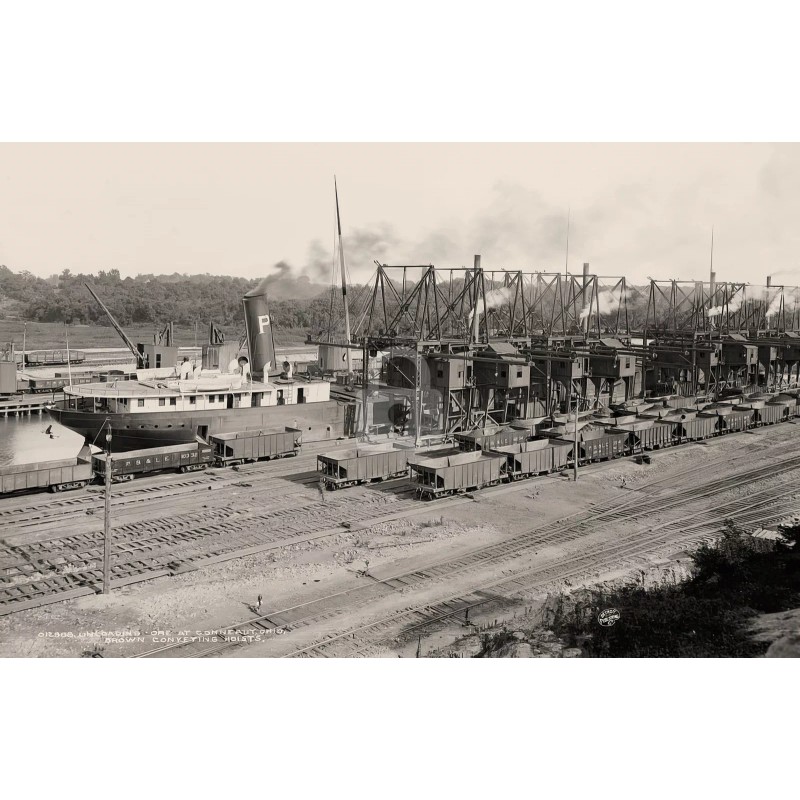 Unloading ore at Conneaut Ohio Brown hoists c1900 RPPC Photo Postcard COPY
