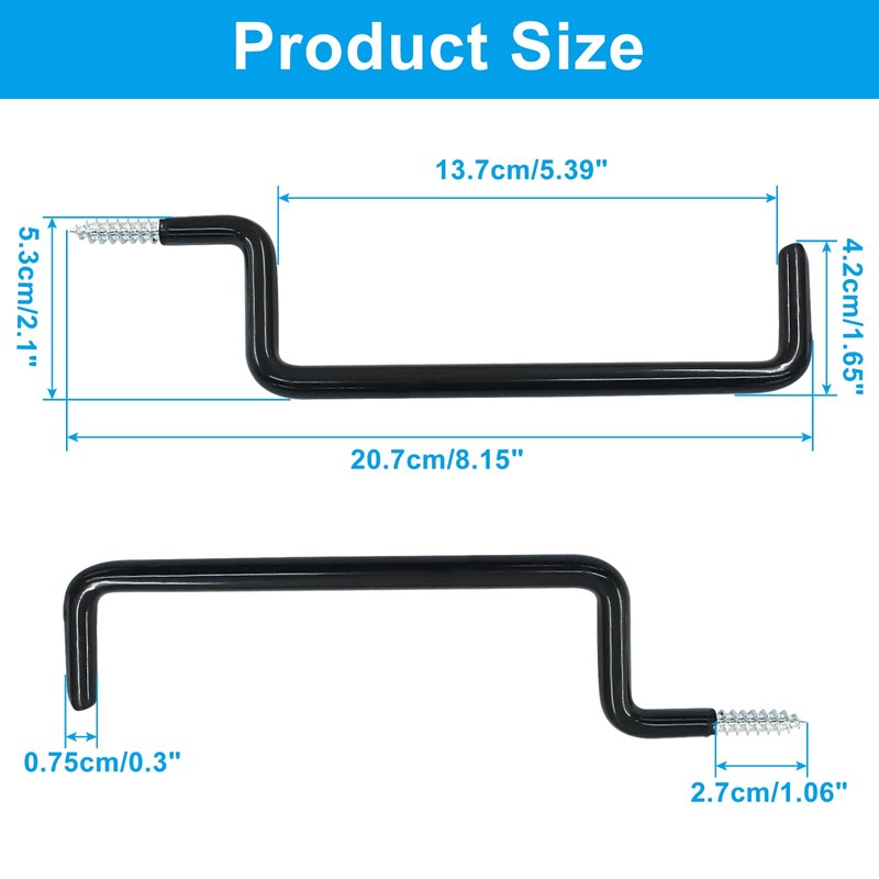 Unlorspy 10 Pcs Screw in Ladder Hook Black Screw-in Garage Hooks 20.7cm/8.15" Bicycle Wall Mounted Hooks for Hanging Bike, Ladder, and Folding Chair