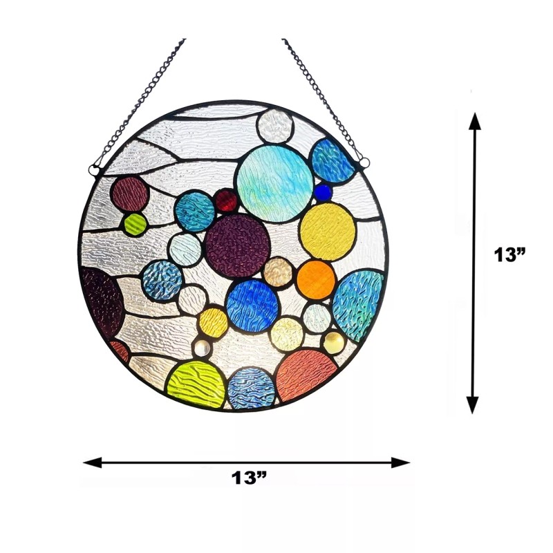 Unmarked 13" Round Stained Glass Window Hanging Panel Suncatcher