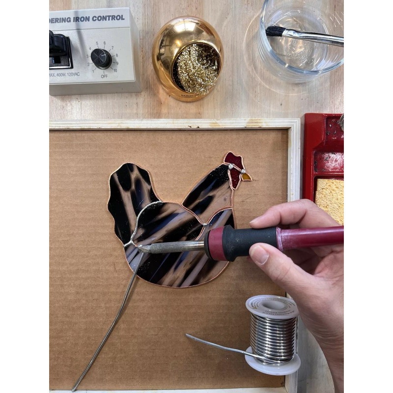 Speckled Stained Glass Roosting Chicken 6” - this beautiful stained glass roosting chicken is crafted with Murano Spirit glass from Oceanside. The original design is by Wildlight Glassworks in Kentucky! This would make a great gift, or buy it for yourself to enjoy!