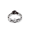 - Hermosa pulsera de piel café con una cuerda de piedras en forma de pera bañadas en plata de ley que varían en tamaño.
