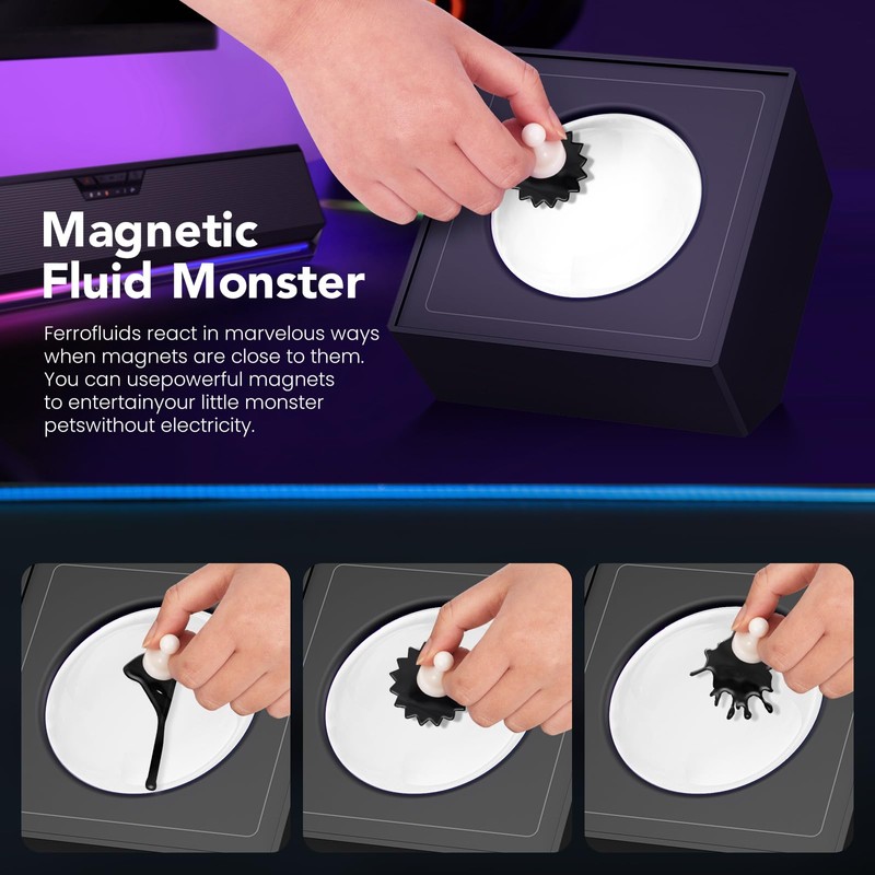 - Unique Creative Giftthis ferrofluid music visualizer is a wonderful blend of science and art, making it an ideal gift for tech enthusiasts or anyone who appreciates innovative decor. Place it next to your speakers, and when the music starts, the ferrofluid is instantly enchanted, capturing every rhythmic point with precision and dancing gently.