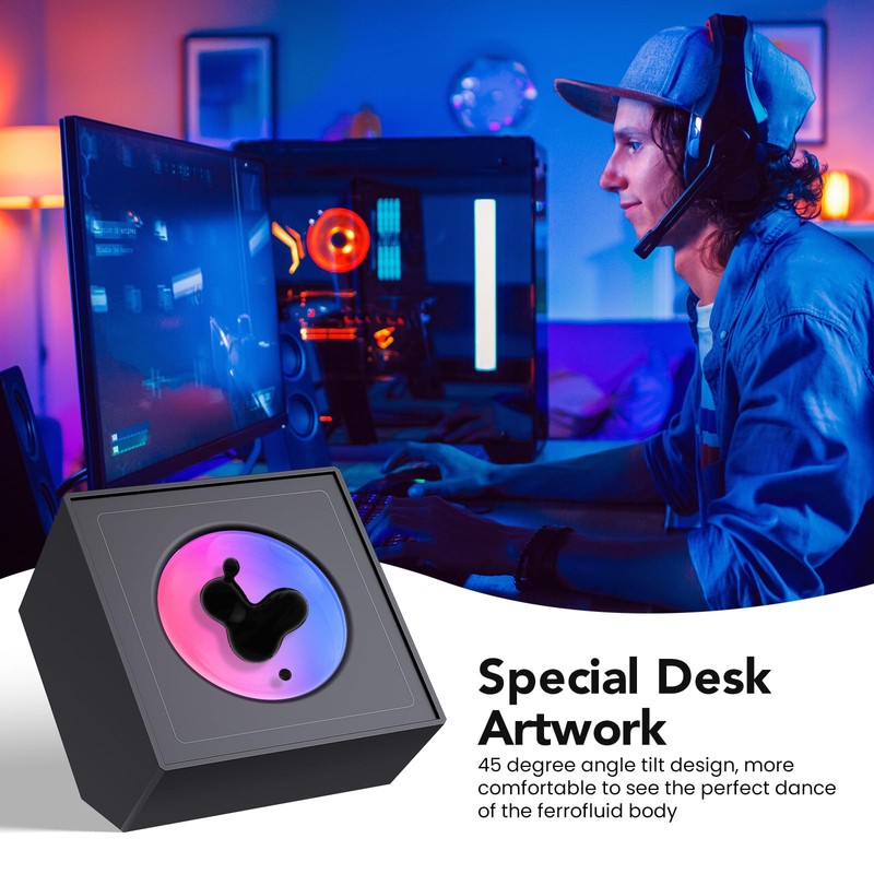 - RGB Colorful Lightthe ferrofluid music rhythm visualizer comes with dazzling rgb lighting, when turned on, the light automatically changes colors, opening a brilliant color party; press the on/off button, press the on/off button, you can make it fixed in your favorite color; it's not just a simple small object, but an exclusive decorative light that can greatly increase the tone of the desktop, easy to create a unique sense of atmosphere.