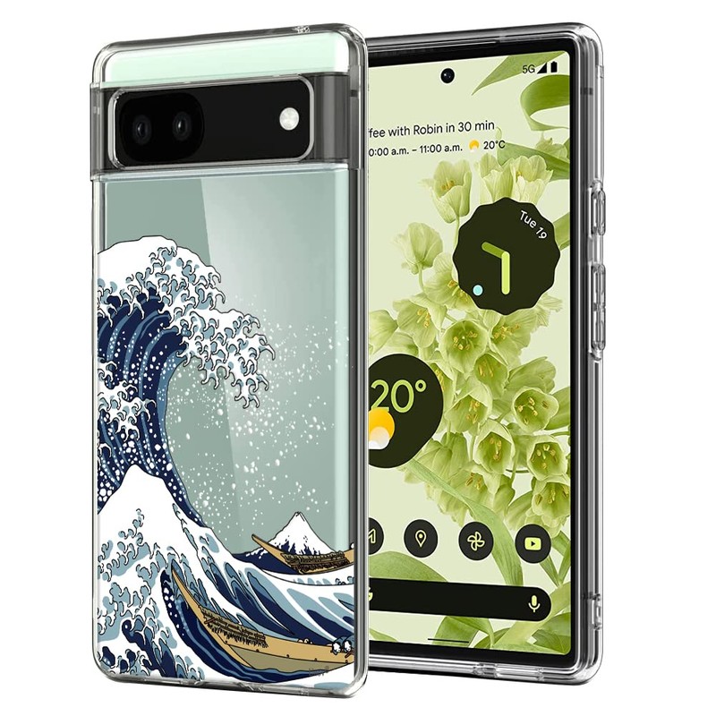 Unov Case Compatible with Pixel 6a Case Clear Transparent Slim Protective Case Soft TPU Bumper Embossed Pattern Shock Absorption 6.1 Inch (Large Wave)