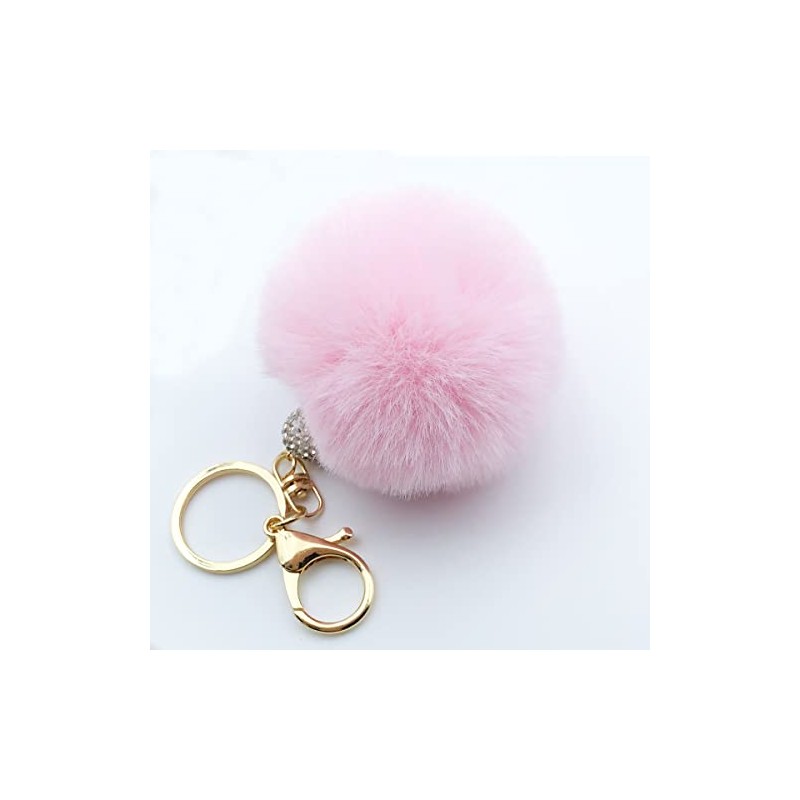 - Material:Faux rabbit Fur. The Fur Puff with Crystal Rhinestone Keychain Ring