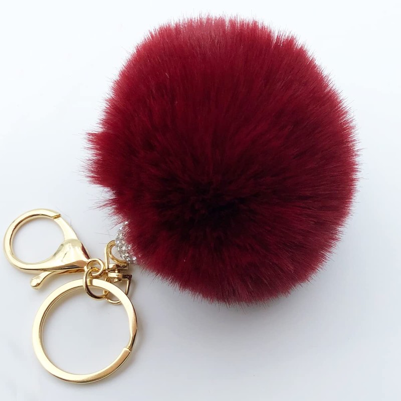 Unpafcxddyig Pom Pom Keychain Artificial Fluffy Ball Keychains with Crystal Rhinestone for Car Handbag Keyring,wine