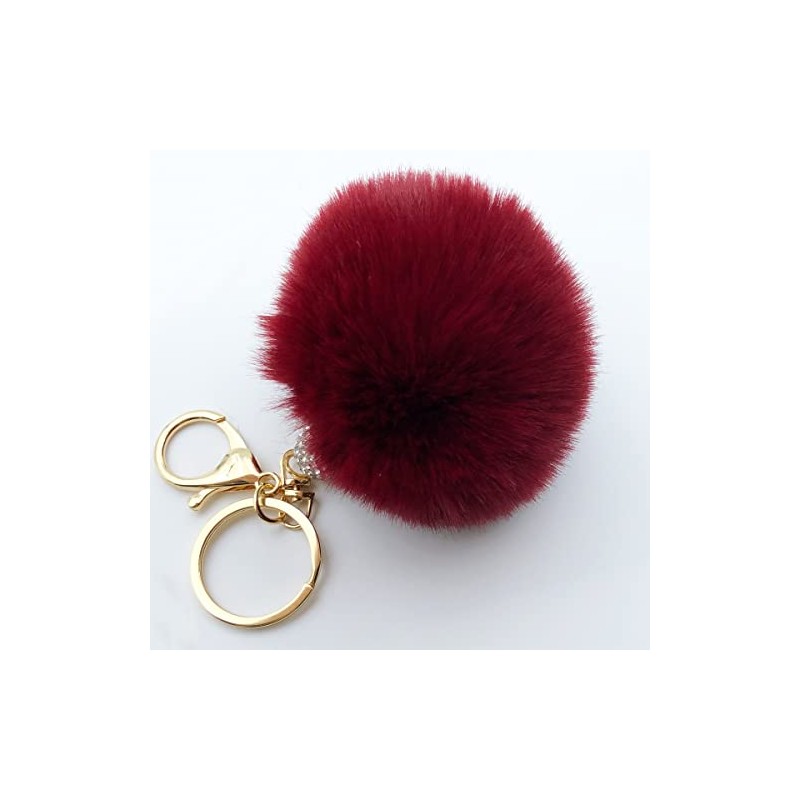 Unpafcxddyig Pom Pom Keychain Artificial Fluffy Ball Keychains with Crystal Rhinestone for Car Handbag Keyring,wine