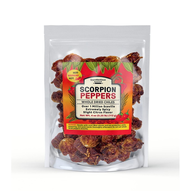 Unpretentious Whole Scorpion Peppers, 4 oz, Extremely Spicy, Hot Chile Peppers