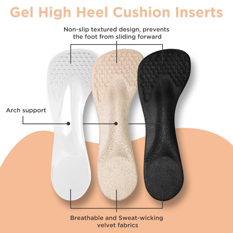 - PREMIUM QUALITY MATERIALS - Unribeau high heel insoles are made of high quality gel material, which is soft and comfortable to wear.The 3/4 insole is designed to provide cushioning and support for the heel and forefoot, pampering your feet.