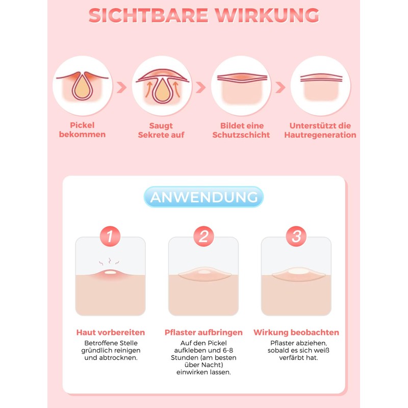 - 【1-Schicht-Heilung - Beschleunigte Regeneration】Einfache Anwendung: Pflaster aufkleben – fertig! Schafft das optimale Wundmilieu: Saugt schonend ab, beugt Manipulation vor und heilt schneller. Anti pickel patches: Dein unsichtbarer Heilsoldat.