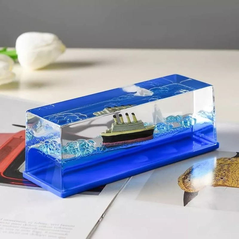 Unsinkable Blue Titanic - Wavy Boat in a Box Liquid