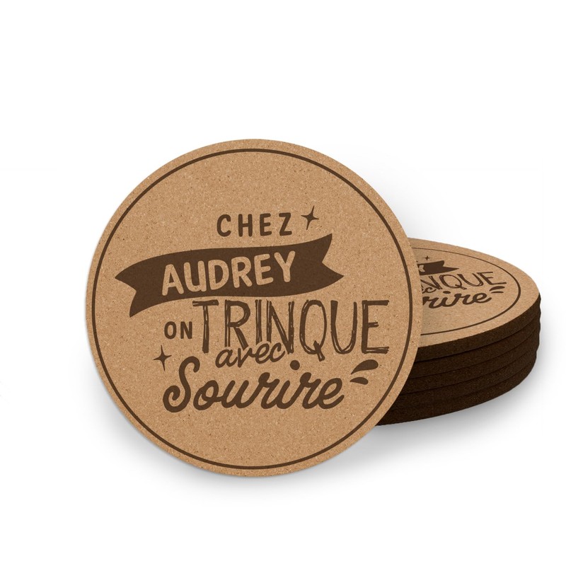 Verleihen Sie Ihren Aperitifs Stil und eine persönliche Note mit unseren gravierten Korkuntersetzern. Ideal zum Schutz Ihres Tisches und zur Verschönerung Ihrer Vorspeisen. Sie sind auch ein tolles Geschenk, das Ihnen Freude bereitet.