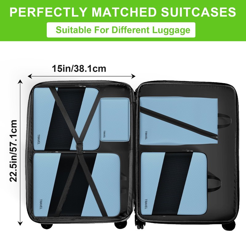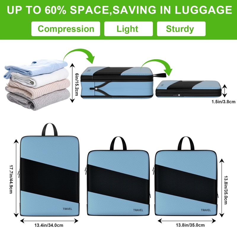 - 【Breathable Mesh Design】Top panel with mesh can well keep your clothes breathable and ventilated, and easy to find out during travel, you don't need to search through your entire suitcase to find what you need. also helps remove the extra air out, easy to compress save more space.