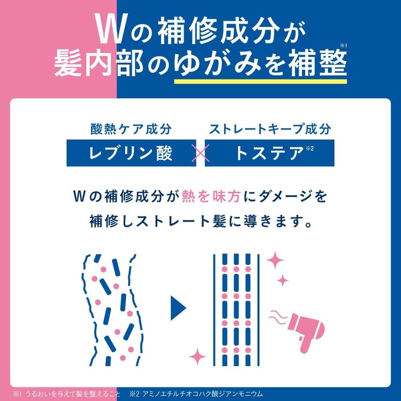 - "Straight-keeping ingredient Tostair*" Approach to the inside of damaged hair (*Diammonium aminoethylthocalate)