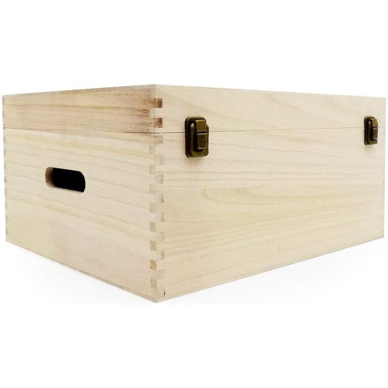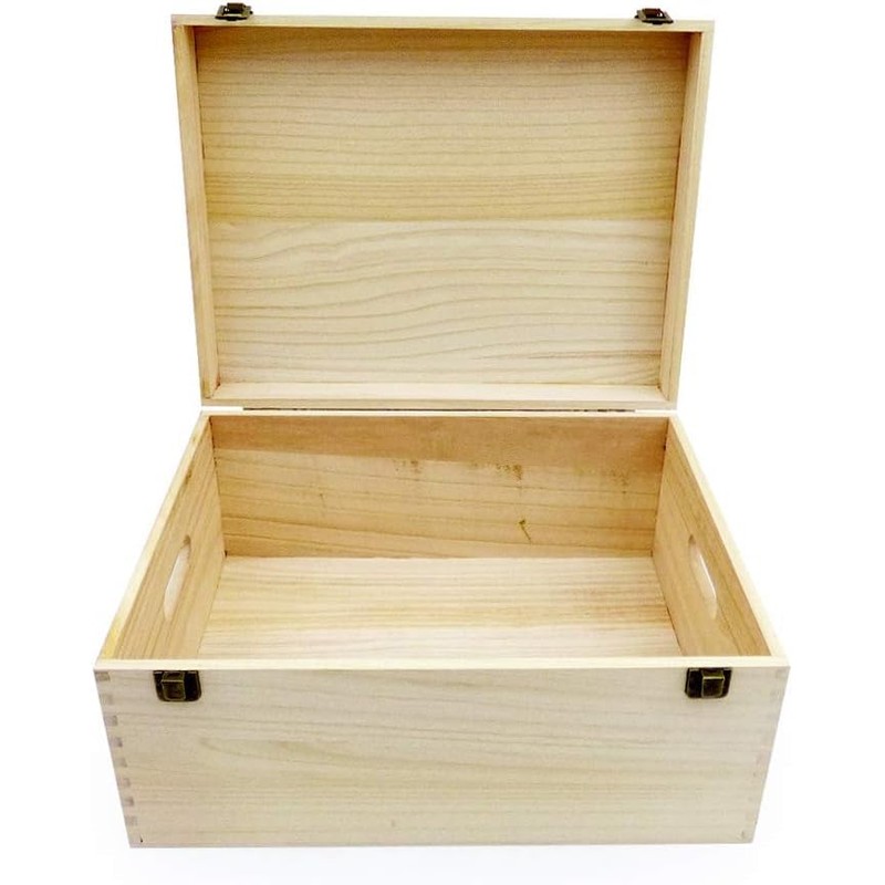 Unvarnished Wooden Storage Box with Hinged Lid and Clasps, 40 x 30 x 20 cm