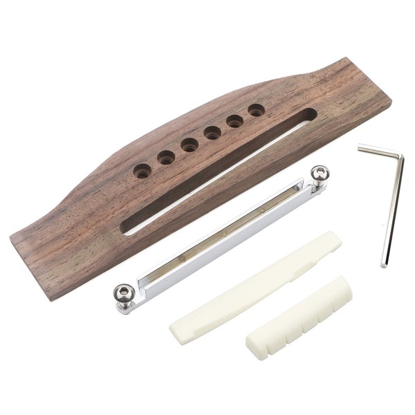 Unxuey Adjustable 6 String Rosewood Bridge Insert Set Acoustic Guitar Saddle Nut Parts Replacement