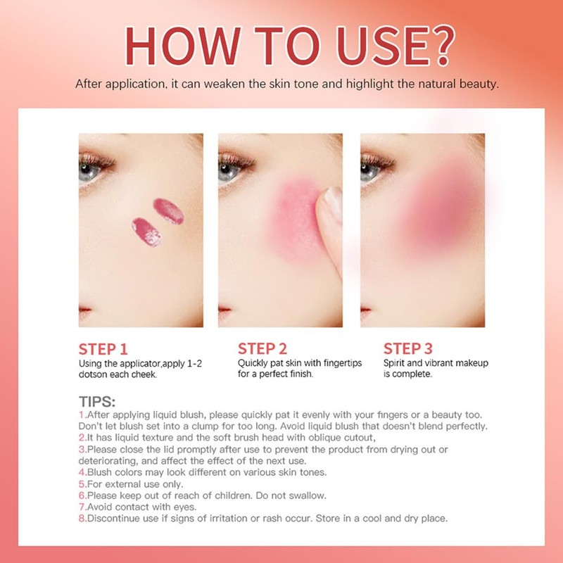 - 【Buildable Gel-cream Formula】The featherweight formula, buildable gel-cream formula makes it hard to go overboard that glides onto the skin leaving behind a soft,dewy finish.Experience all-day moisture and brightness liquid blush's unique formula,creating a natural and flattering makeup look.