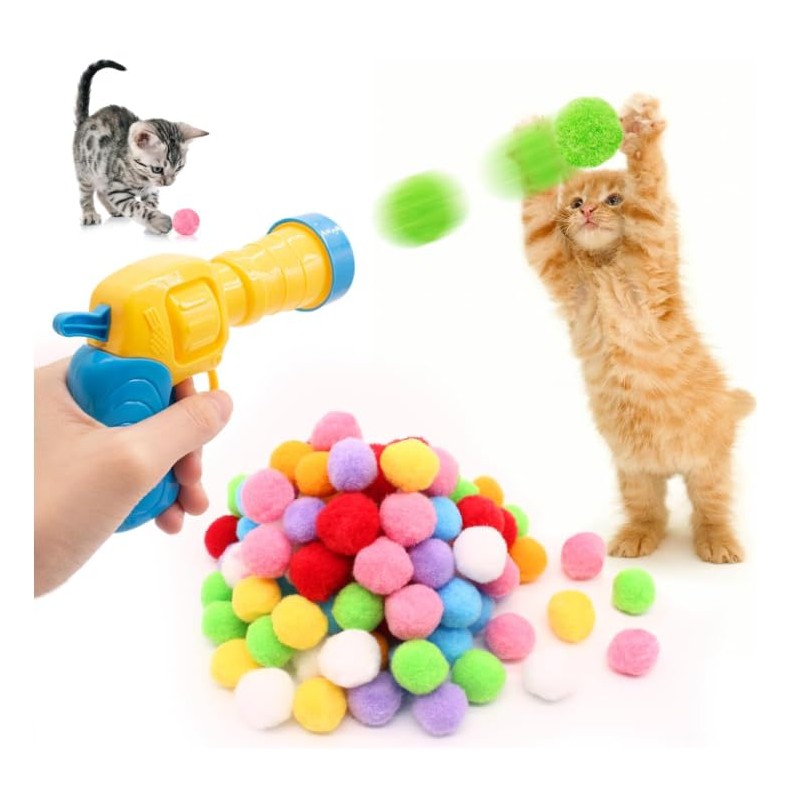 UOCAI Cat Toy 100 Balls, Cat Ball Launcher Plush Ball Interactive Cat Toy Interactive Cat Toy Plush Ball Cat Shooting Training Cat Toy Stretch