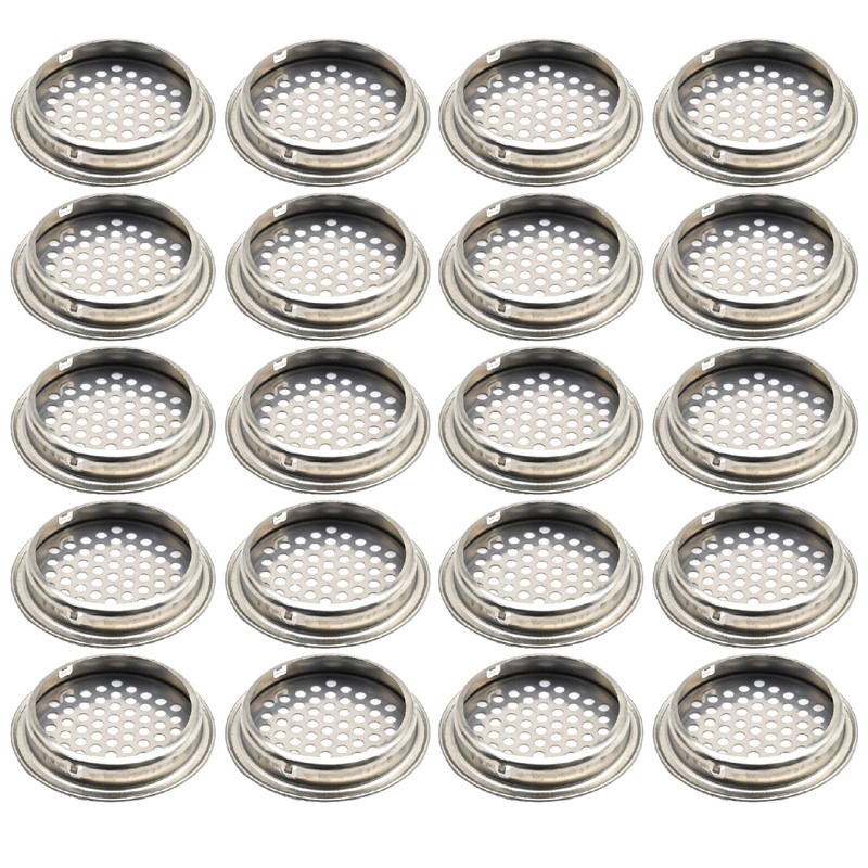 UOIENRT 20 Pcs Stainless Steel Round Soffit Vent, 2-1/9Inch (53mm) Sliver Flat Circular Air Vent Covers, Circular Soffit Vent for Cabinet Shoe Cabinet Wardrobe Decorative Cabinet