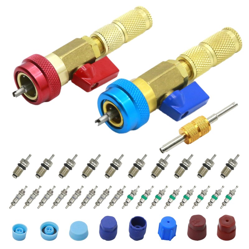 UOIENRT 37 Pcs R134A Valve Quick Core Remover Installer Tool Kit, High Low Pressure AC Valve Core Removal Tool for R12 R134a Refrigeration Air Conditioner System